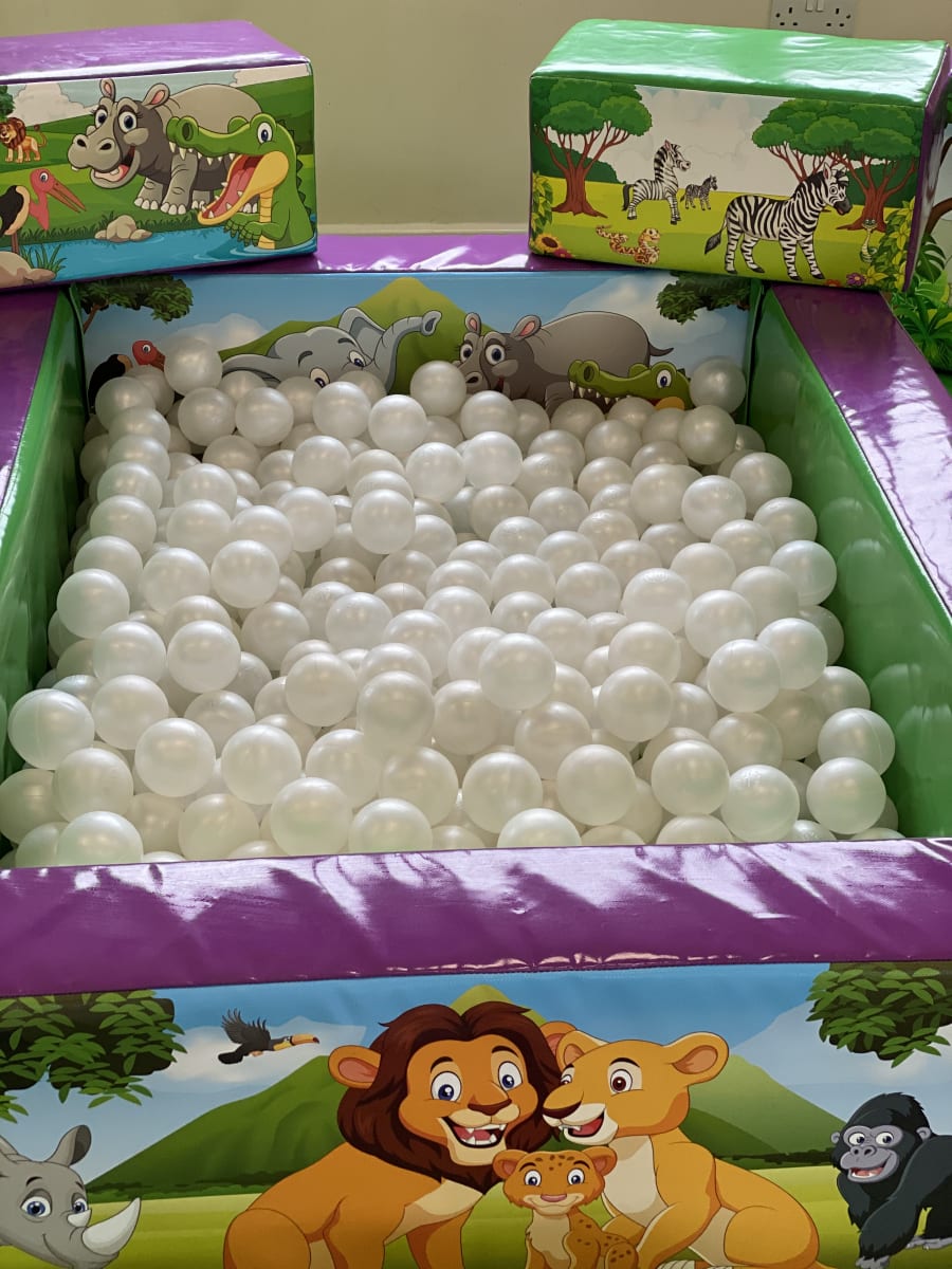 Our beautiful jungle soft play set is a wonderful choice with a generic & timeless design to fit in with all occasions for both boys & girls, offering beautiful & highly coloured graphics of the most popular jungle animals, including an elephant, monkey, tiger, lions, hippo & giraffe, the set comprises of 17 shapes from cubes, to circles & rectangles, accompanied by a ball pit that will be filled with approximately 500 pearlised balls.