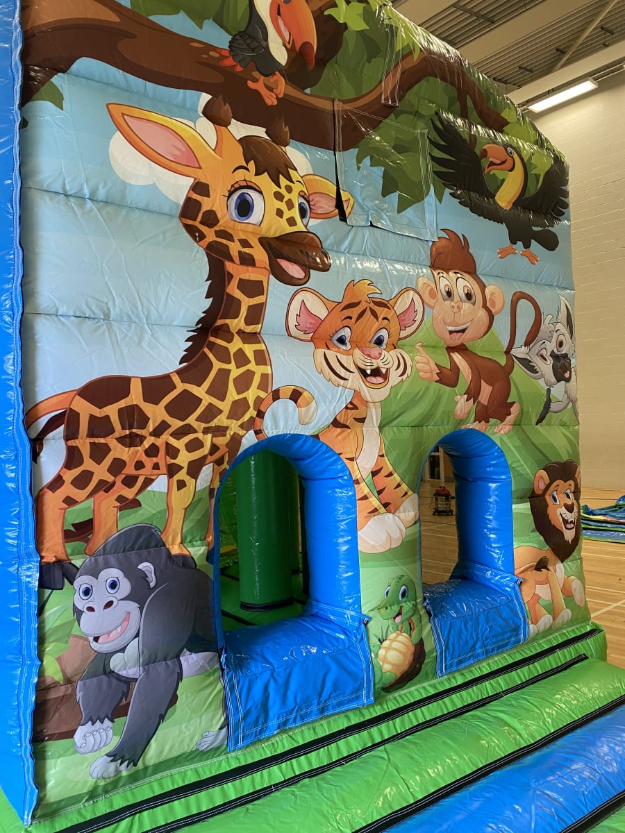 New for 2022 Our Jungle Fun run is a whopper of a beast, the kids will love monkeying around with their mates on our Jungle Assault Course. Offering a bounce area inside with biff bashes, and a large slide on exit, this will take your party/event to a whole new level with fun guaranteed, it will be the talk of the party, and for many months after, creating wonderful memories, with its glossy finish & highly colourful graphics of jungle wildlife, including lions, tigers, giraffes, monkeys & more this is one party trick not to be ignored! We shall also be offering our Jungle Funrun in a package to be matched with Jungle Soft Play, & a supersized package to include our new Jungle Playzone.