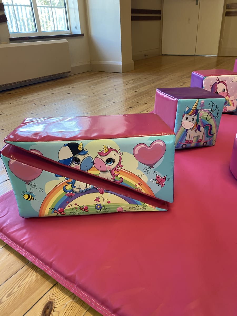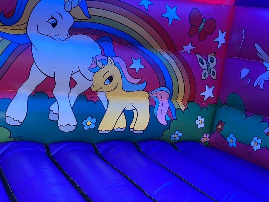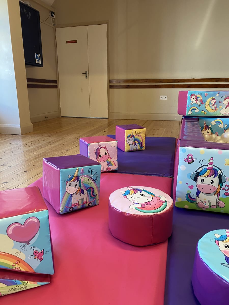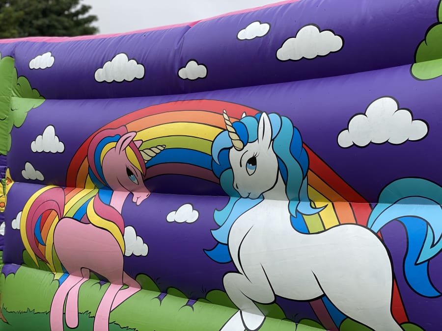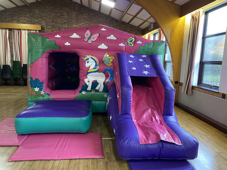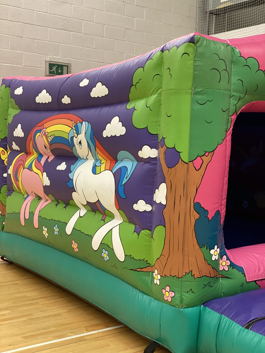Our Unicorn Party Bouncy Castle & Soft Play Package is suitable for most halls & community centres.