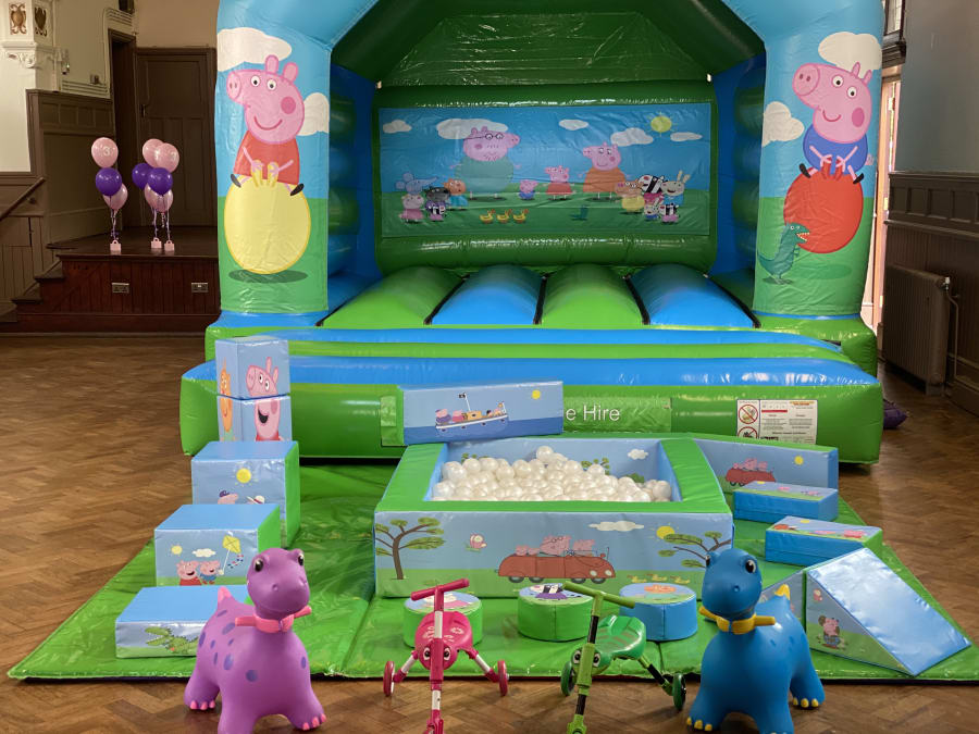 Our Peppa Pig Bouncy Castle & Soft Play Package is suitable for most halls & community centres.