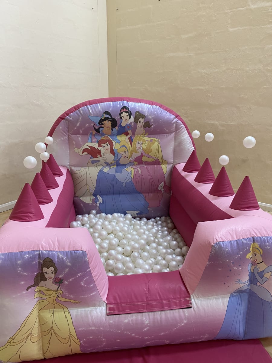 Our Princess Air Juggler Ball Pit comes complete with blower, mat, pegs/sandbags & approximately 1000 balls.