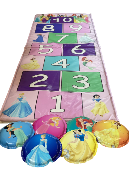 Our Jumbo Princess Hopscotch is only available for indoor hire perfect for most Halls & Community Centres.
