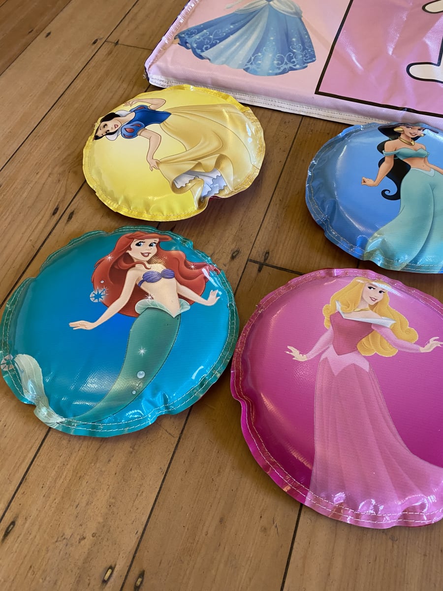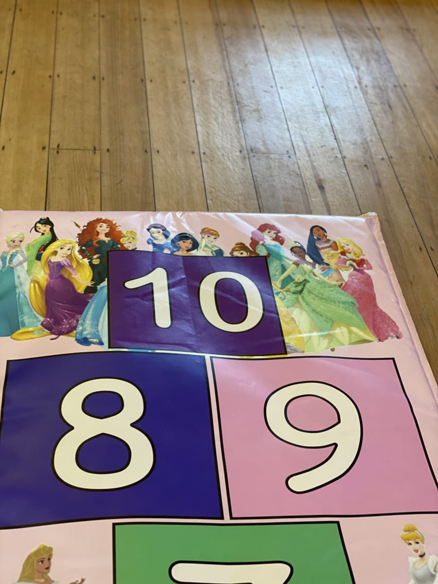 Our Jumbo sized Princess Hopscotch is 10ft in length & 3ft wide, can only be added as an additional add on to your booking, goes perfect with any of our Princess bouncy castles, or our Princess air juggler, or maybe just an additional bolt on to Princess soft play or any soft play package, one thing for sure it will be a huge hit with the little ones.