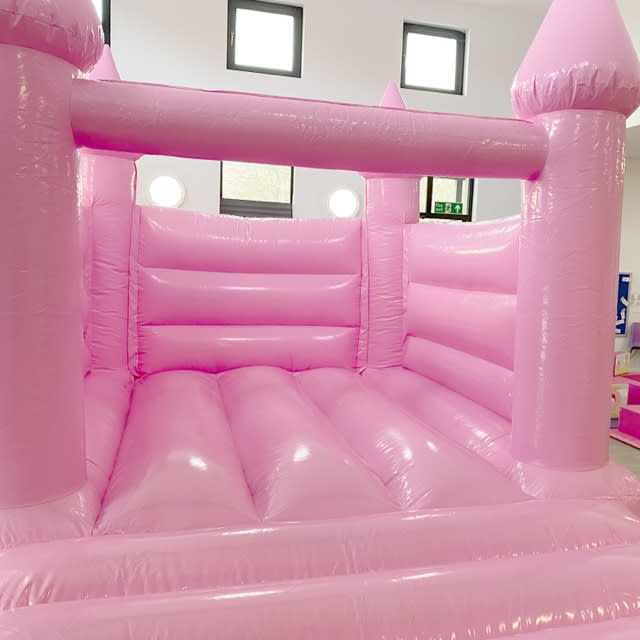 Our lovely Pastel Bouncy Castle is supplied with dark pink mats & is only available for indoor hire, perfect size for most Halls, Community Centres & Village Halls.