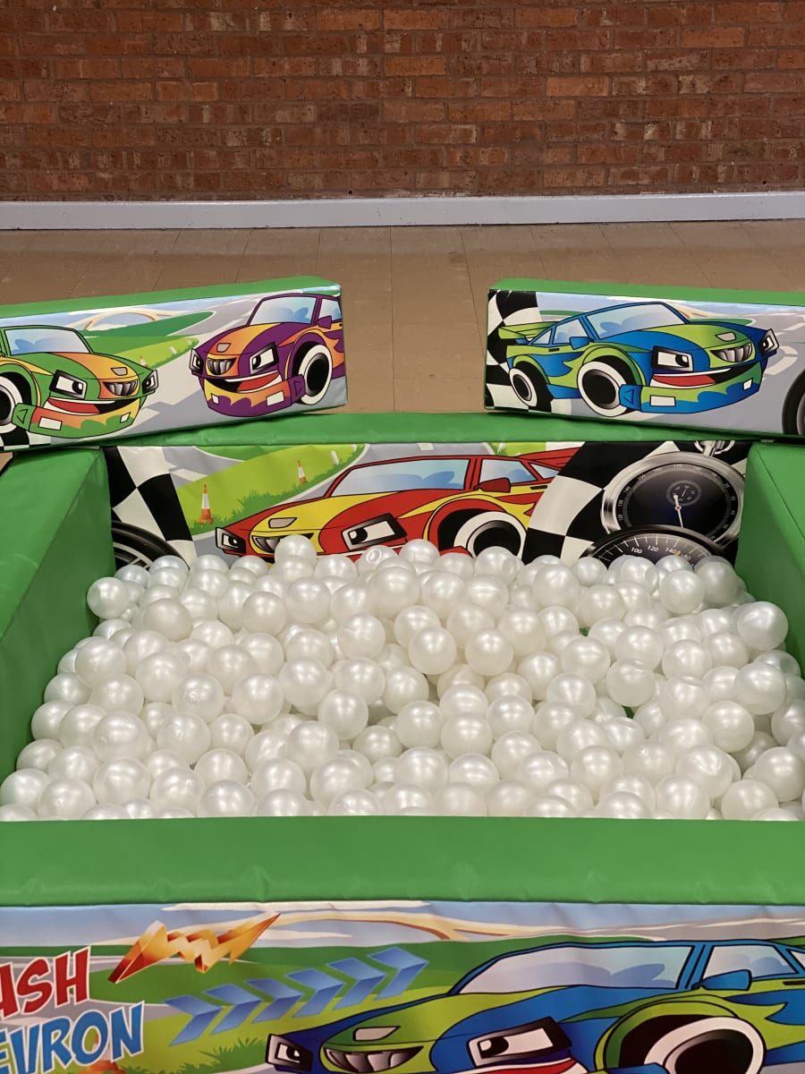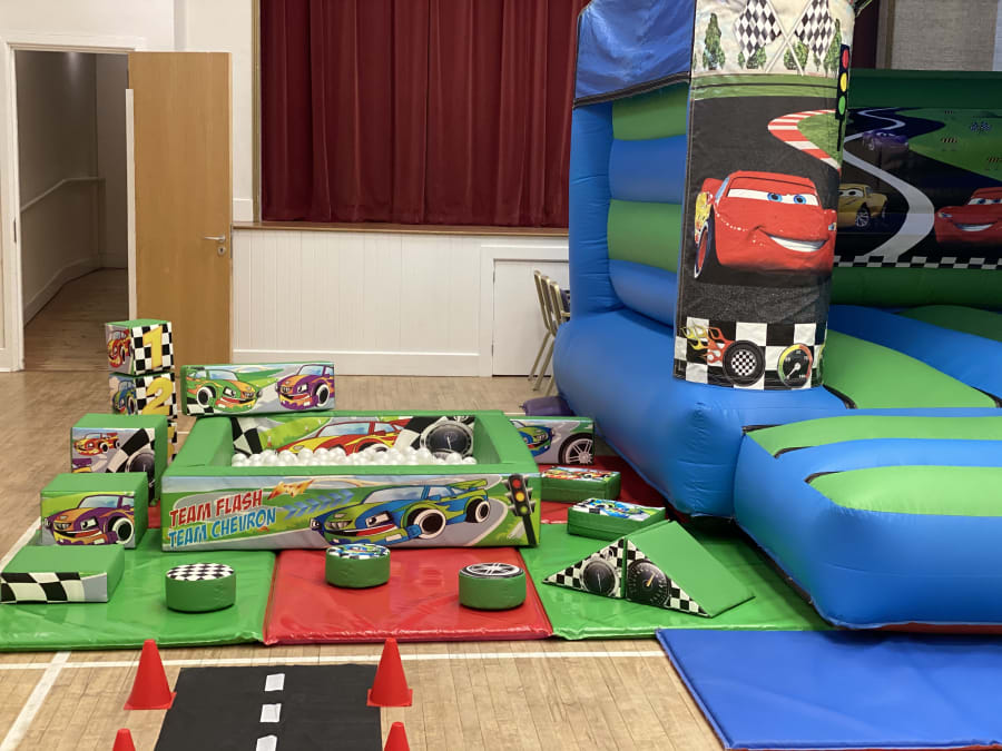 Our Cars Bouncy Castle & Soft Play Package is suitable for most halls & community centres.