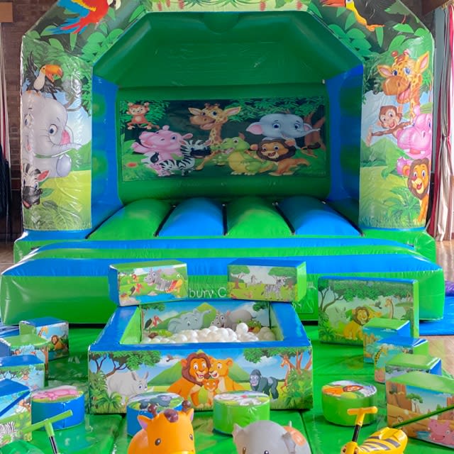Our Jungle Bouncy Castle & Soft Play Package is suitable for most halls & community centres.