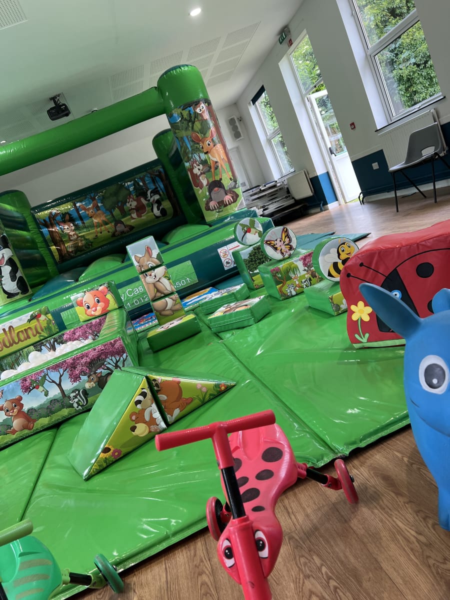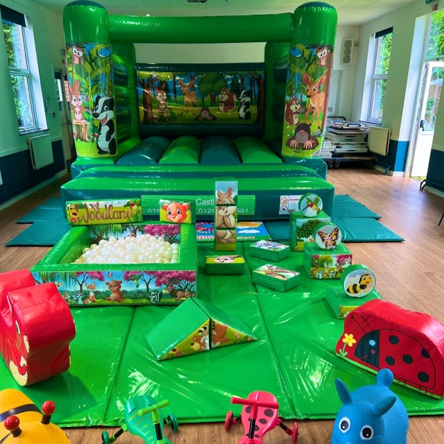 Our Woodland Themed Bouncy Castle & Soft Play Package is suitable for most halls & community centres.