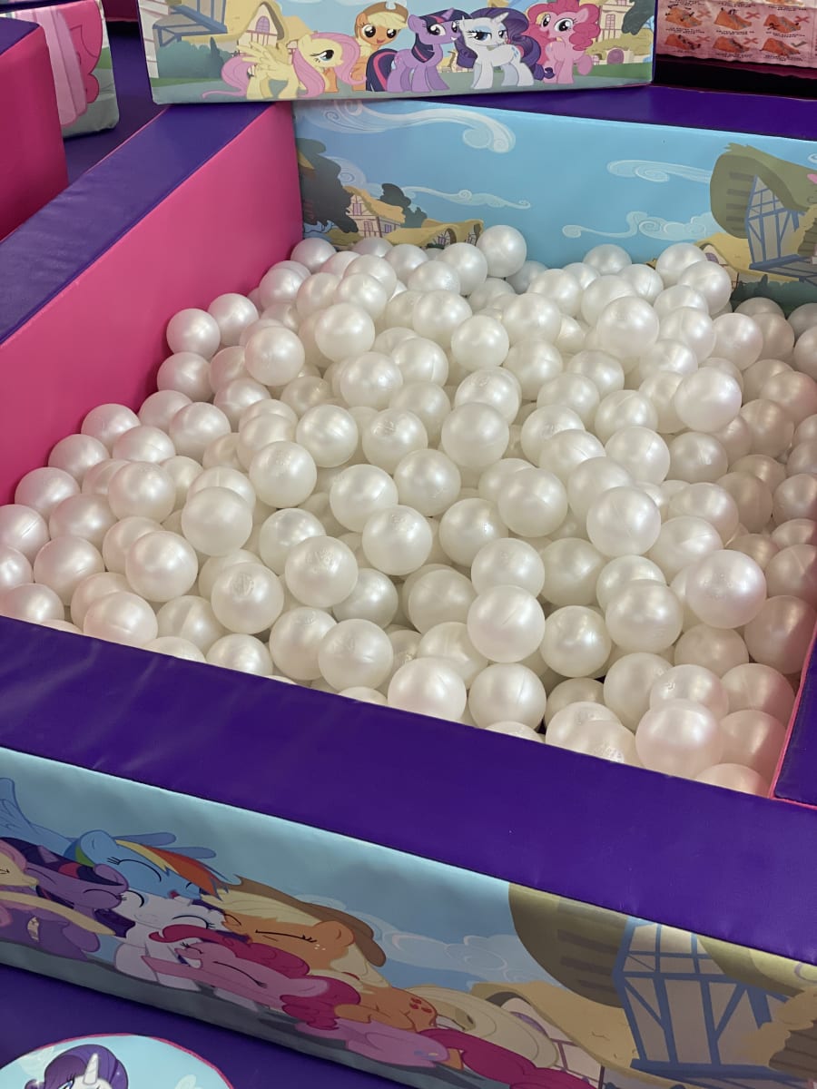 Our My Little Pony Disco party package is just adorable & perfect for all sorts of celebrations, the kids will love dancing & jumping around inside the castle with their friends and all their favourite characters such as Pinkie Pie, Fluttershy or Twilight Sparkle, while the disco lights are sparking & the music is playing, then bopping off to play with the matching My Little Pony Soft Play which will include 17 pieces of different shapes, including circles, triangles & stacking cubes, this beautiful set is accompanied with a gorgeous matching ball pit, filled to the brim with white pearlised balls & included will be 2 hoppers & 2 ride on toys, why not finish your package off by adding our Children's white wooden tables & chairs, these can be found in our Bolt On Section, with lots of other wonderful items, such as our Didi cars, or extra Hoppers, Cozy Coupes, the list is endless to cater for little or large parties, & to make your celebration just perfect & how you want it.